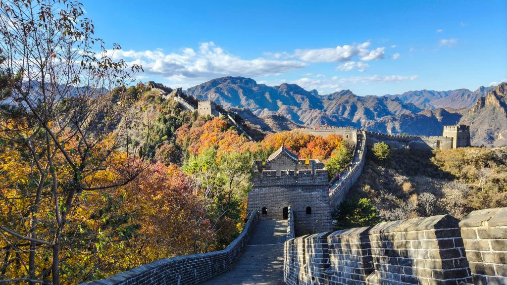 Tembok Besar Dihiasi Daun Warna-warni