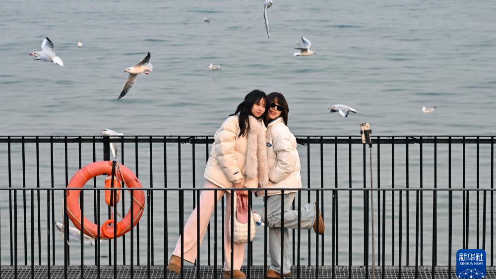 Pelancong Bergambar dengan Burung Camar