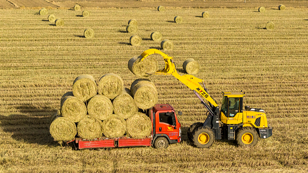 Bergotong-royong Pindahkan Jerami dari Persawahan