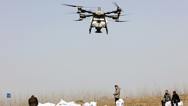 Tabur Baja di Perladangan Gandum dengan Dron